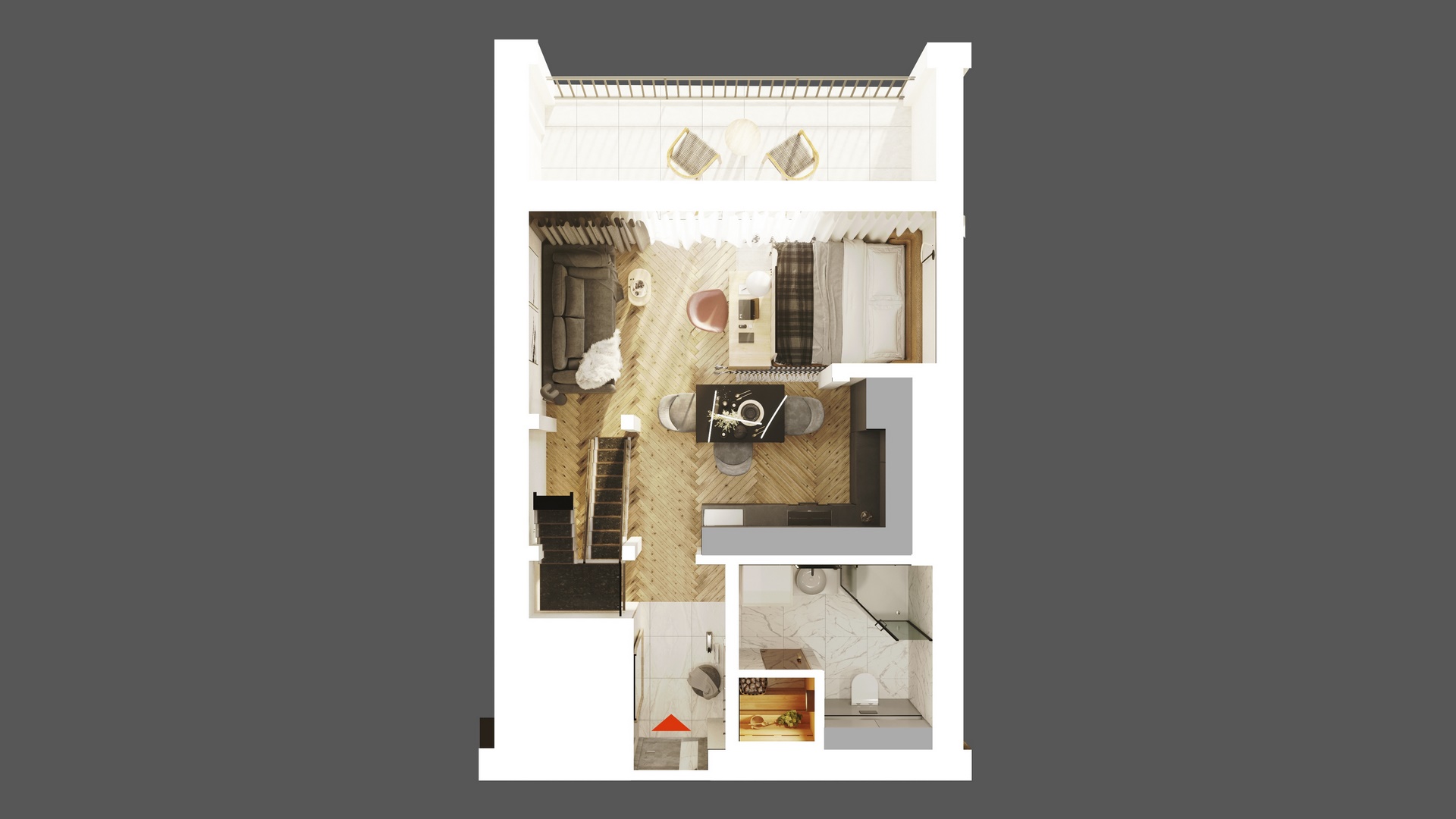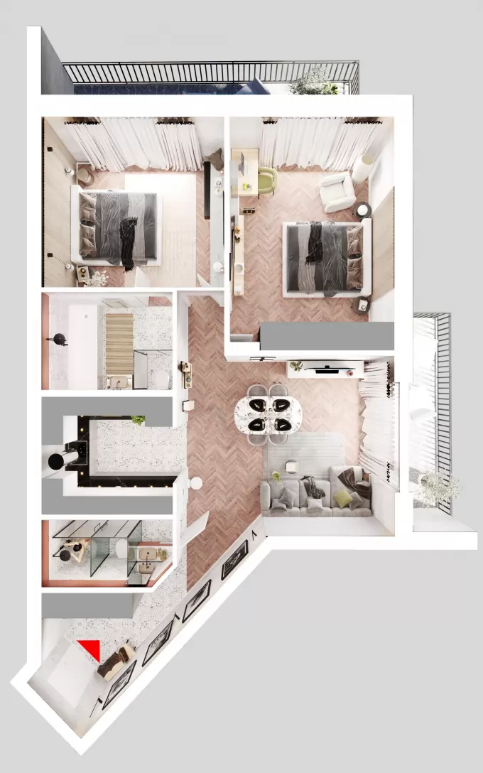 Индивидуальные открытые террасы. Больше пространства - ваш уголок свободы в сердце города. Отдыхайте с потрясающими видами и свежим воздухом.