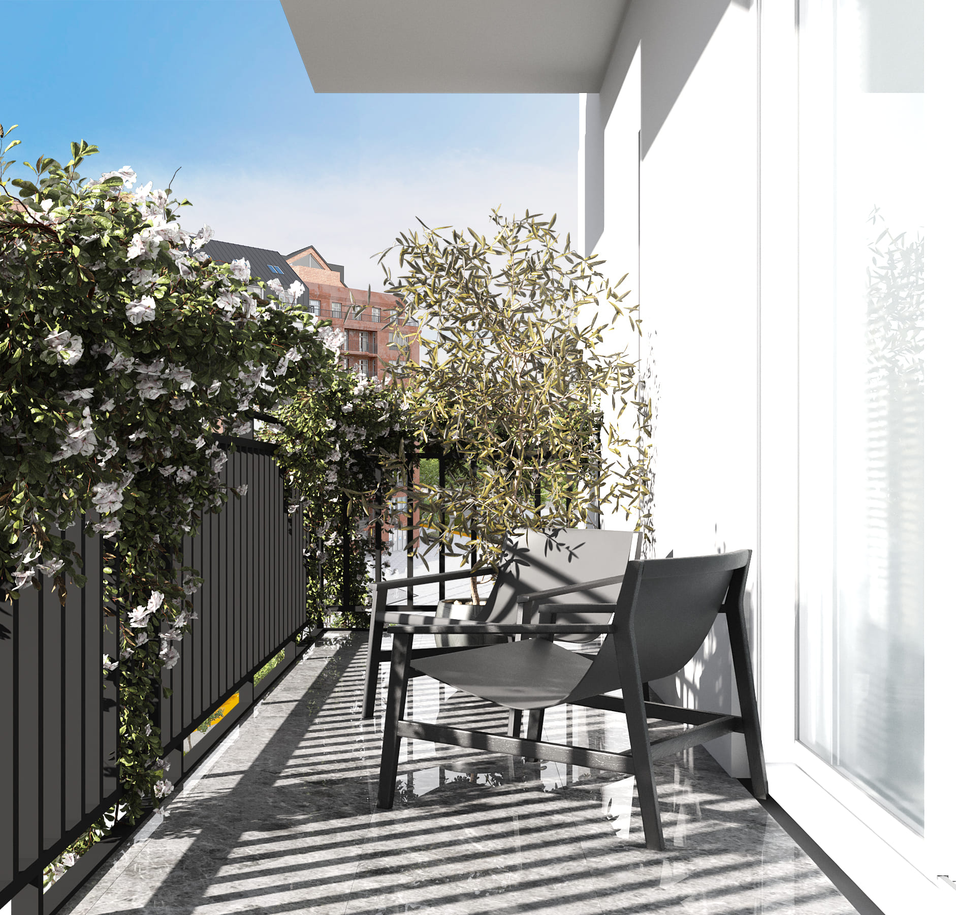 Индивидуальные открытые террасы. Больше пространства - ваш уголок свободы в сердце города. Отдыхайте с потрясающими видами и свежим воздухом.