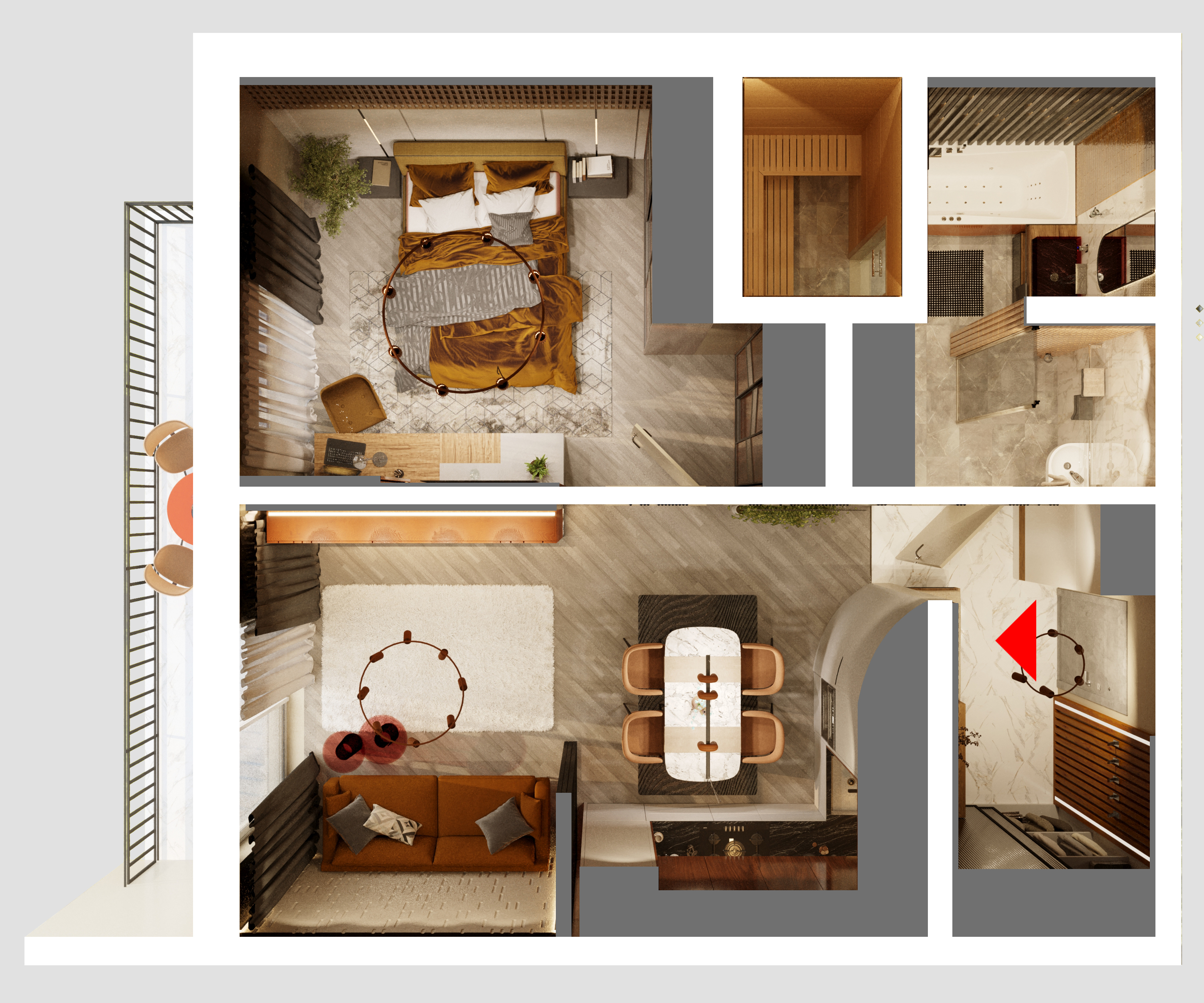 Индивидуальные открытые террасы. Больше пространства - ваш уголок свободы в сердце города. Отдыхайте с потрясающими видами и свежим воздухом.
