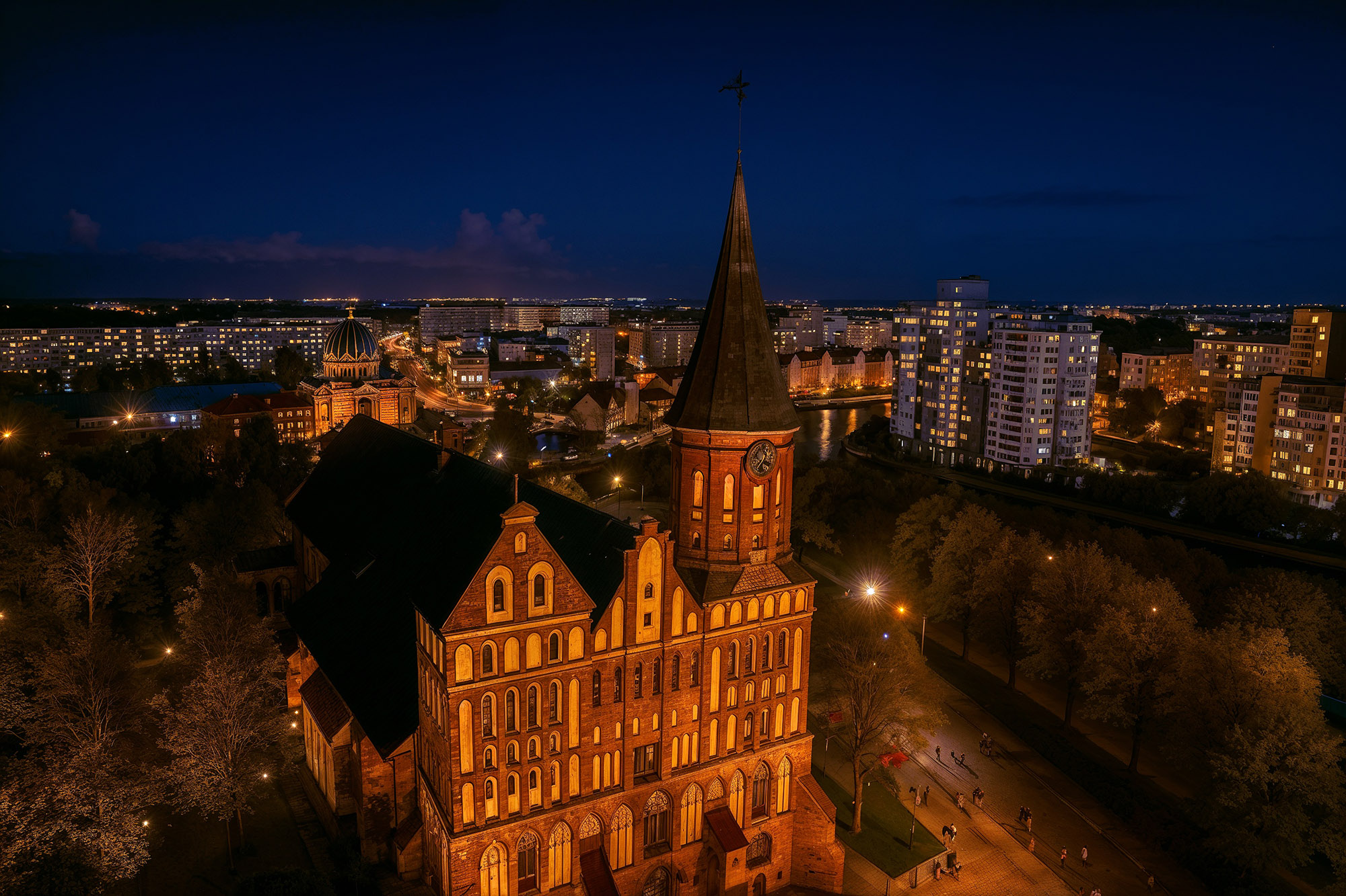 Организаторы каждый сезон собирают праздничный городок у Кафедрального собора. На афише указывают даты 25.12.2025–11.01.2026 и часы работы, на ярмарке будут фудкорт, фотозоны, мастер-классы, проекции. Гостей ждет новогодняя ярмарка на острове Канта и вечерний маршрут по центру.