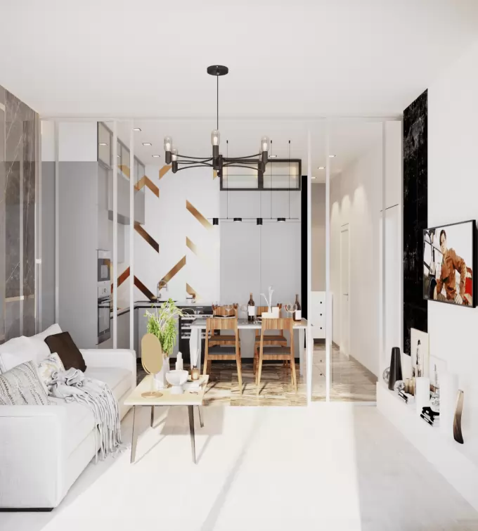 White Box — это чистый холст для воплощения ваших самых креативных интерьерных идей. Мы создали безупречную базу, чтобы вам не пришлось тратить время и средства на подготовку квартиры — можно сразу приступать к созданию авторского дизайна.
